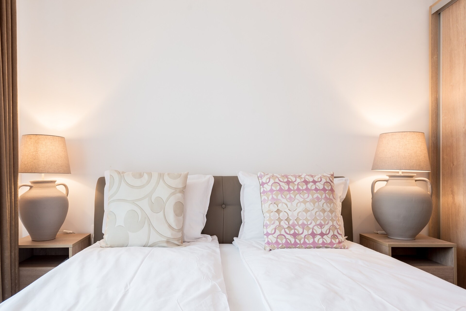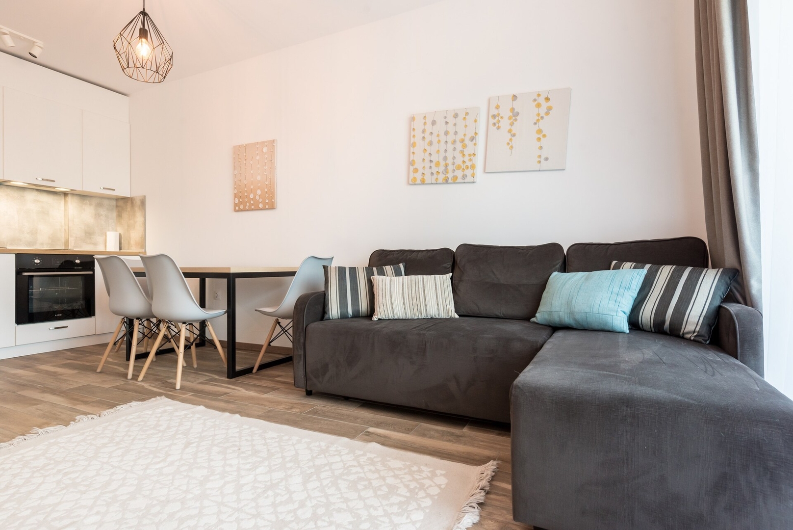 You are welcome to enjoy a comfortable and relaxing stay in this stylish flat, situated on the ground floor in Azur Premium 1 complex! The flat is fully furnished and equipped for a comfortable stay. Free WiFi and Tv included. Free swimming pool access.