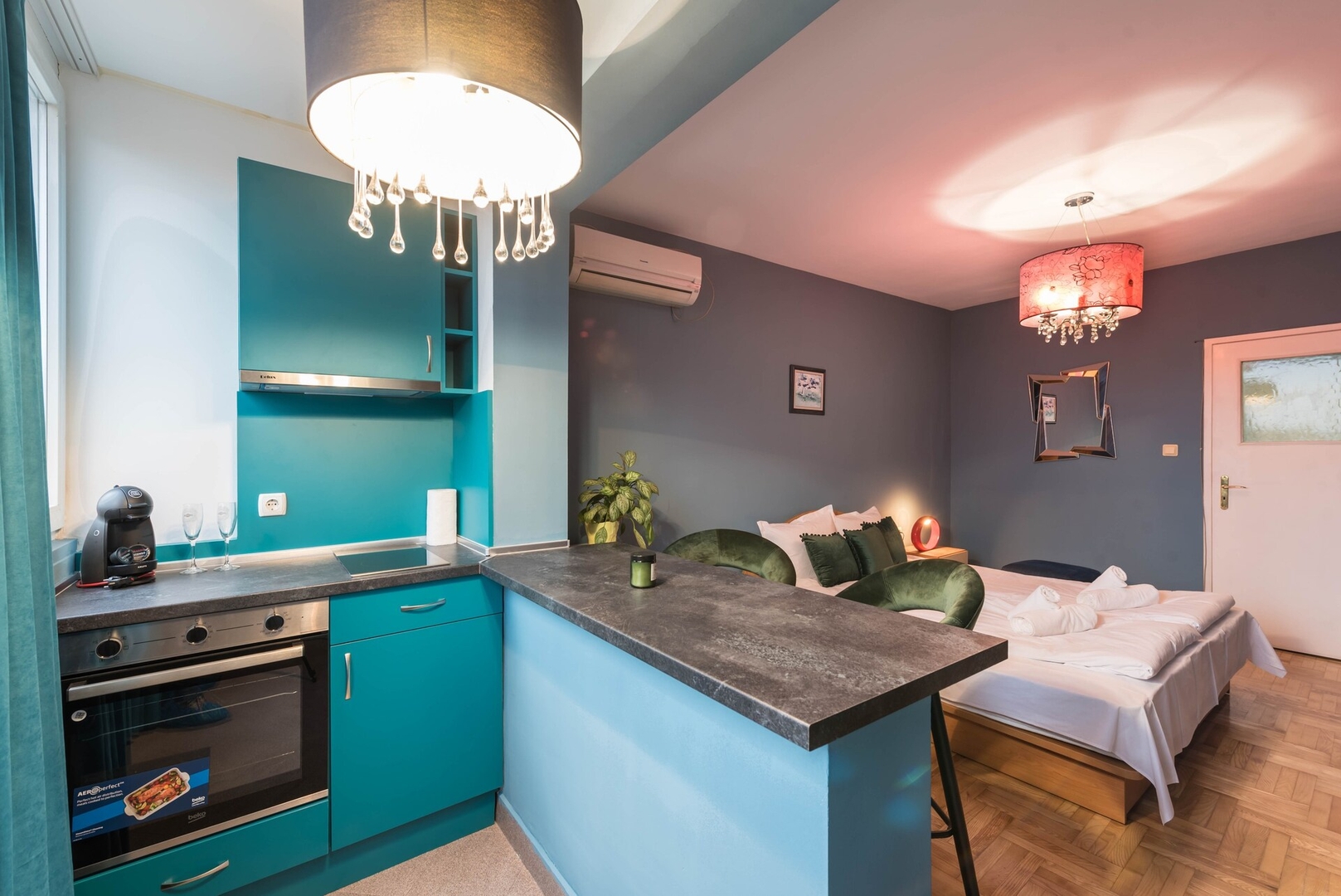 Enjoy easy access to everything from this perfectly located home base. The studio is situated on the 6th floor in a residential building close to the University of Economics, the Sea Garden and "Saedinenie" square (also known as "Cherven ploshtad") Everything is walking distance, including 24/7 shops, street food and lovely places to dine such as the Martini bar! The studio has private bathroom and WC and is equipped with free WiFi and air conditioner. Suitable for couples and solo travelers.