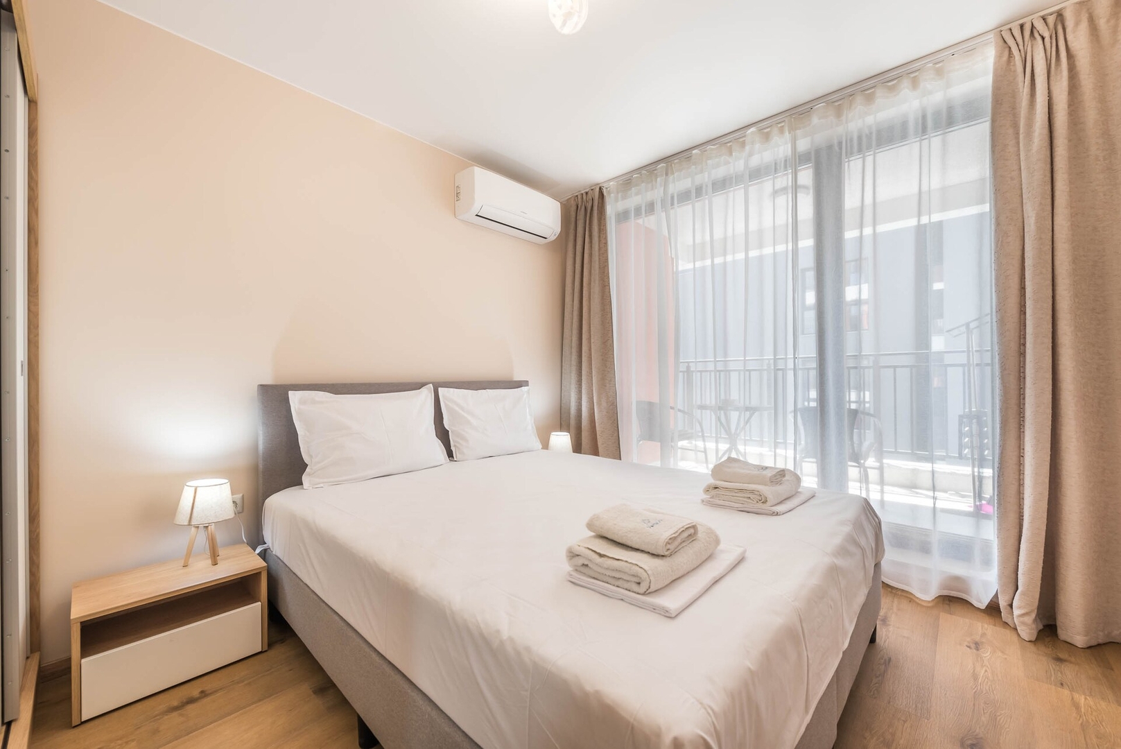 You are welcome to stay and relax in this calm, stylish space, designed to offer guests peace and comfort during their stay. The apartment is situated on the 5th floor in a brand new building on Mir street, close to University Hospital St. Marina, Military Hospital, Technical University of Varna and etc. Fast and easy access to all other popular locations such as the center of Varna and St. St. Constantine and Helena. Other extras: Free WiFi available Supermarket on the ground floor