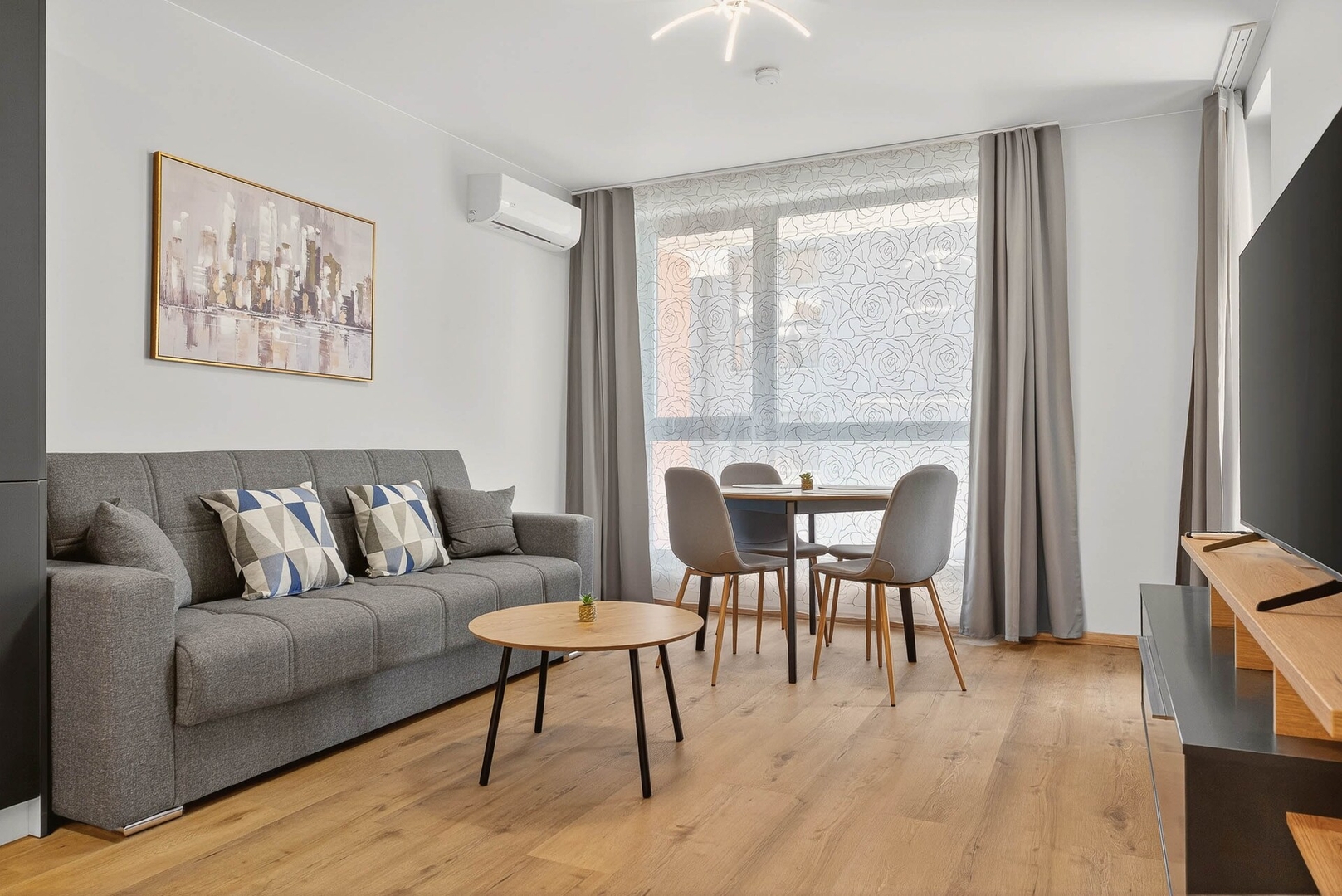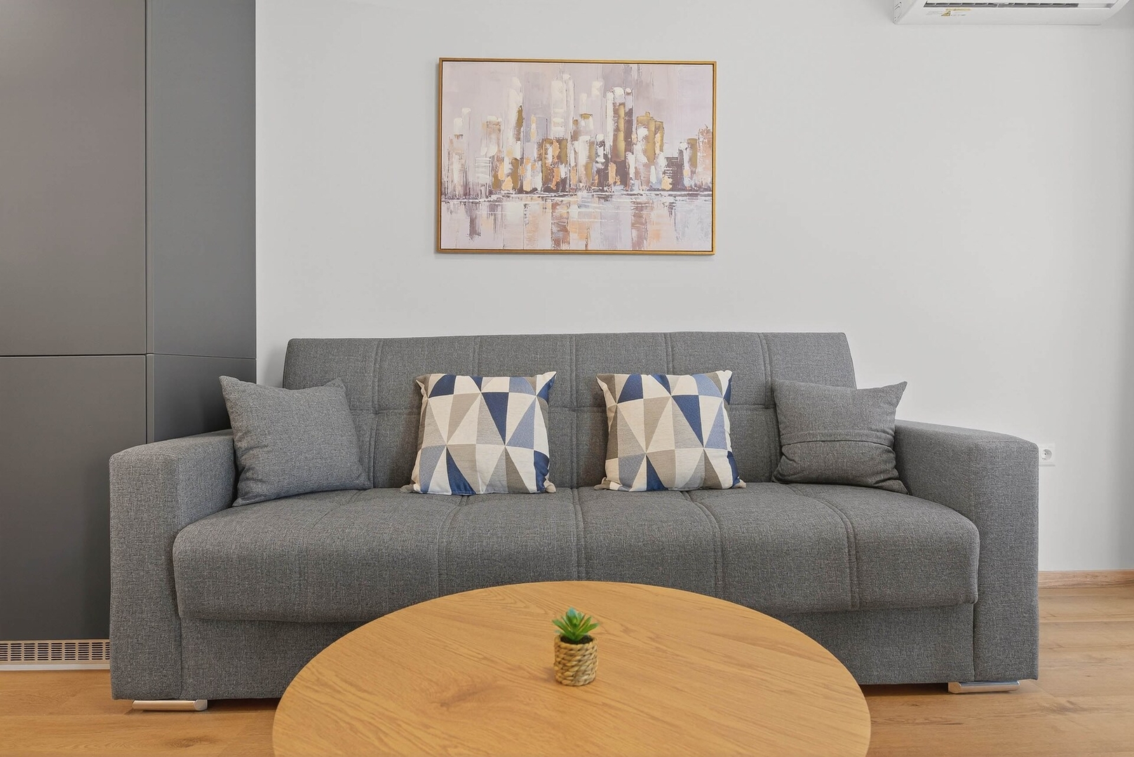 You are welcome to stay and relax in this calm, stylish space, designed to offer guests peace and comfort during their stay. The apartment is situated on the 5th floor in a brand new building on Mir street, close to University Hospital St. Marina, Military Hospital, Technical University of Varna and etc. Fast and easy access to all other popular locations such as the center of Varna and St. St. Constantine and Helena. Other extras: Free WiFi available Supermarket on the ground floor
